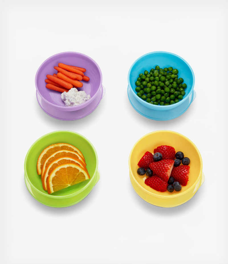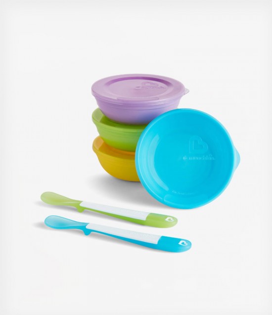 Όταν τα μωρά αφήνουν το μπουκάλι και αρχίζουν να τρώνε στερεές τροφές, τα μπολ δεν είναι ποτέ αρκετά – συνήθως είναι λίγα, λερωμένα ή σπασμένα! Τουλάχιστον αυτή ήταν η κατάσταση μέχρι τώρα. Τα Love-a-Bowl της εταιρείας μας δεν λερώνουν, δεν στάζουν και δεν σπάζουν – 100% εγγυημένα. Μπορείτε να τα χρησιμοποιήσετε παντού και αντέχουν στον φούρνο μικροκυμάτων, την κατάψυξη και το πλυντήριο πιάτων. Στο σετ τεσσάρων μπολ περιλαμβάνονται τέσσερα καπάκια και δύο κουτάλια με μαλακό άκρο για να αρχίσει το μωρό σας να τρώει στερεές τροφές. Από βρεφικές τροφές μέχρι σνακ για μικρά παιδιά, τα μπολ αποθηκεύονται εύκολα και είναι ιδανικά για χρήση καθ’ οδόν όταν οι μαμάδες είναι απασχολημένες. Όσο για την αποθήκευση, στοιβάζονται πανεύκολα. Δοκιμάστε αυτό το σετ ταΐσματος σε έντονα χρώματα – τα μπολ και τα κουτάλια θα βρουν σίγουρα μια θέση στην κουζίνα σας (και την καρδιά σας).