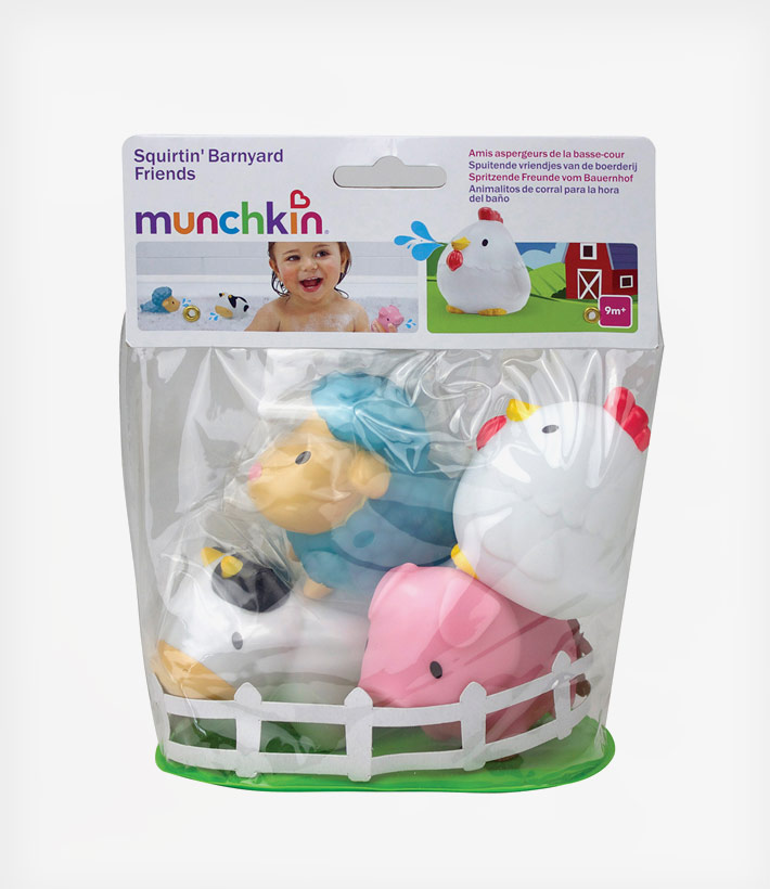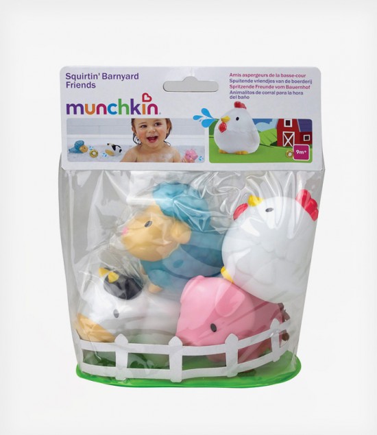 Μήπως ο παππούς σας είχε φάρμα; Τώρα έχει και το μωρό σας! Μετατρέψτε την μπανιέρα σε φάρμα με τους τέσσερις φίλους της σειράς Farm™. Στη συσκευασία περιλαμβάνονται 4 διασκεδαστικά ζωάκια: μια κότα, ένα πρόβατο, μια αγελάδα και ένα γουρούνι. Βοηθήστε το μωρό σας να αναπτύξει κινητικές ικανότητες και να μάθει τα ονόματα και τους ήχους των ζώων! Αυτά τα παιχνίδια σε έντονα χρώματα επιπλέουν, πιτσιλίζουν νερό και έχουν κατάλληλο μέγεθος για τα χεράκια του μωρού σας, ώστε να μπορεί να τα πιάνει και να τα πιέζει. Επιπλέον, είναι ανθεκτικά, δεν ξεφτίζουν και δεν σπάζουν. Ρίξτε τα ζωάκια στην μπανιέρα και γνωρίστε μαζί τους νέες περιπέτειες!
