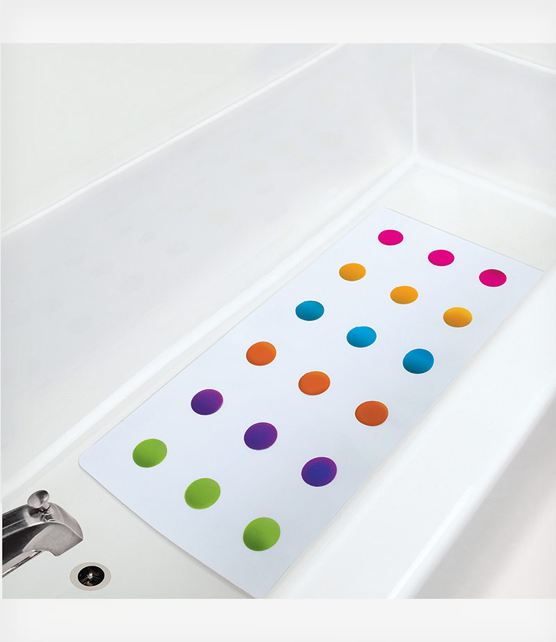 Φροντίστε για την ασφάλεια του παιδιού σας στο μπάνιο με αυτό το πιτσιλωτό, πολύχρωμο αντιολισθητικό ταπέτο μπάνιου.