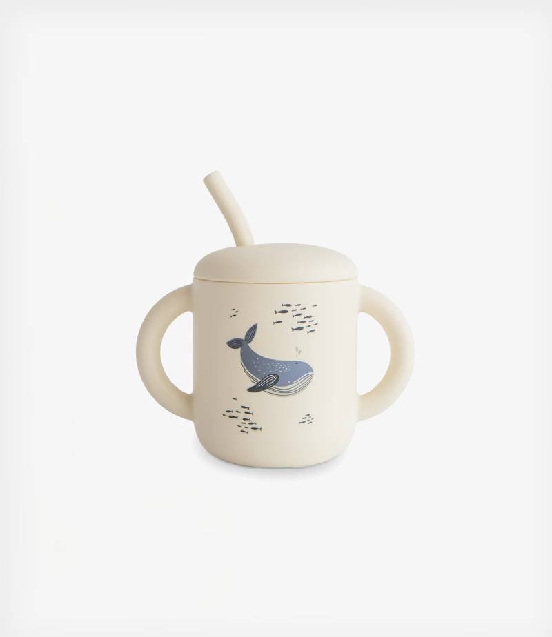 Mushie Εκπαιδευτικό Ποτήρι Σιλικόνης με Εργονομικές Λαβές και Καλαμάκι Whales