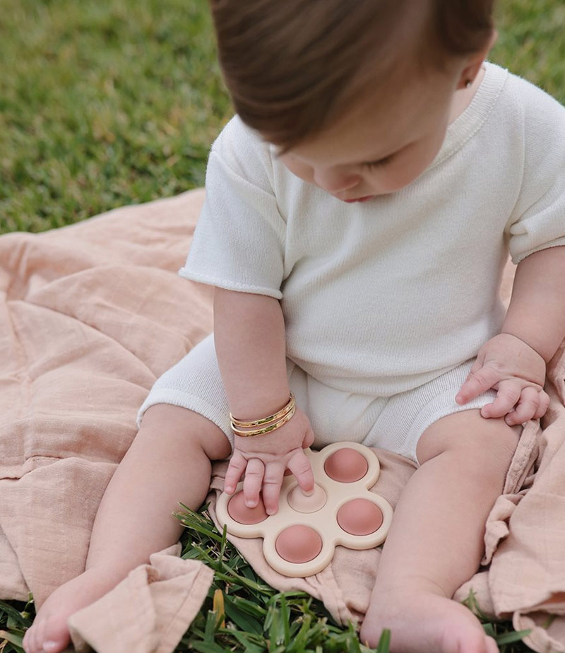 Ένα χαριτωμένο αισθητηριακό παιχνίδι πίεσης, εμπνευσμένο από τη φύση και κατασκευασμένο με κριτήριο τα μικρά χεράκια, το παιχνίδι push and play σε σχήμα μαργαρίτας, ενθαρρύνει την αισθητηριακή εξερεύνηση και την ανάπτυξη λεπτών κινητικών δεξιοτήτων με τον απλό σχεδιασμό και τα απαλά χρώματα. Διαθέτοντας σιλικόνη ποιότητας τροφίμων και πλαστικό πλαίσιο χωρίς BPA, τα παιδιά θα αξιοποιήσουν τη μάθηση καθώς πιέζουν τις φυσαλίδες και ακούνε ένα απαλό σκασμό.