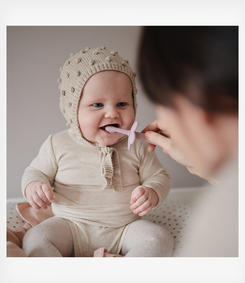 Δώστε στο μικρό σας τη δυνατότητα να βουρτσίσει μόνο του τα δοντάκια του, ενώ παράλληλα εξοικιώνεται με την παιχνιδιάρικα σχεδιασμένη οδοντόβουρτσα της Mushie. Κατασκευασμένη από 100% σιλικόνη, αυτή η οδοντόβουρτσα έχει σχεδιαστεί με εξαιρετικά μαλακή βούρτσα που καθαρίζουν απαλά και διεγείρουν τα ούλα και τα δόντια του μικρού σας.