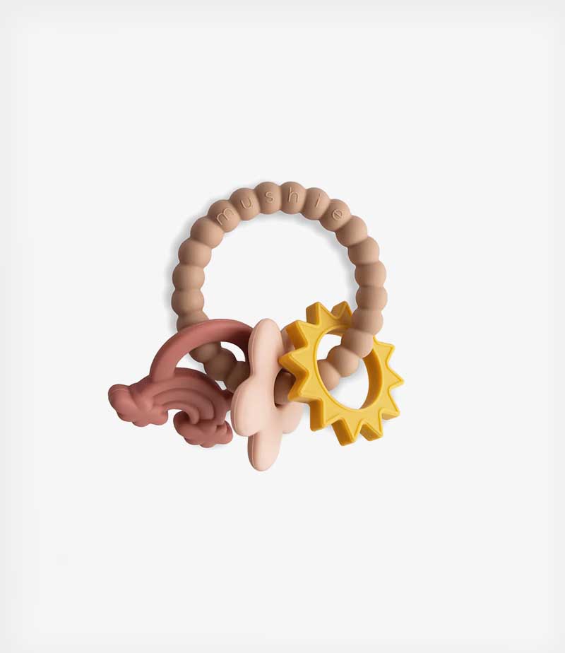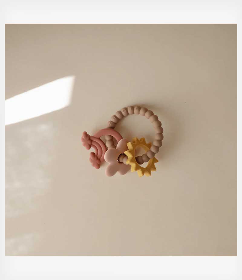 Βοηθήστε τα μικρά να εξερευνήσουν πλούσιες αισθήσεις, σχήματα και υφές με ένα δαχτυλίδι οδοντοφυΐας που περιλαμβάνει τρία στοιχεία της φύσης.