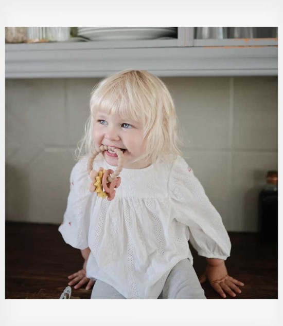 Κατασκευασμένο από 100% σιλικόνη για τρόφιμα, τα μωρά που βγάζουν οδοντοφυΐα θα απολαμβάνουν να βυθίζουν τα ούλα τους στο μαλακό υλικό που ικανοποιεί τη φυσική επιθυμία για μάσημα.