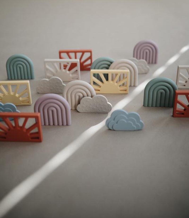 Το μασητικό Mushie βοηθάει και καταπραΰνει τα ερεθισμένα ούλα του μωρού σας με τη σειρά των ουράνιων τόξων.