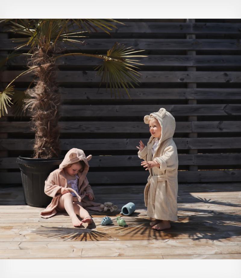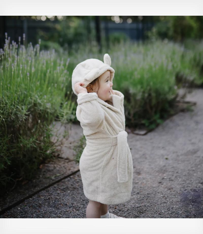 Κάντε τις στιγμές μετά το μπάνιο ακόμη πιο ζεστές και χαριτωμένες με το μπουρνούζι Bear, φτιαγμένο από 100% οργανικό βαμβάκι. Το απαλό και απορροφητικό ύφασμά του είναι ιδανικό για την ευαίσθητη παιδική επιδερμίδα, προσφέροντας άνεση και αγκαλιά μετά το μπάνιο.