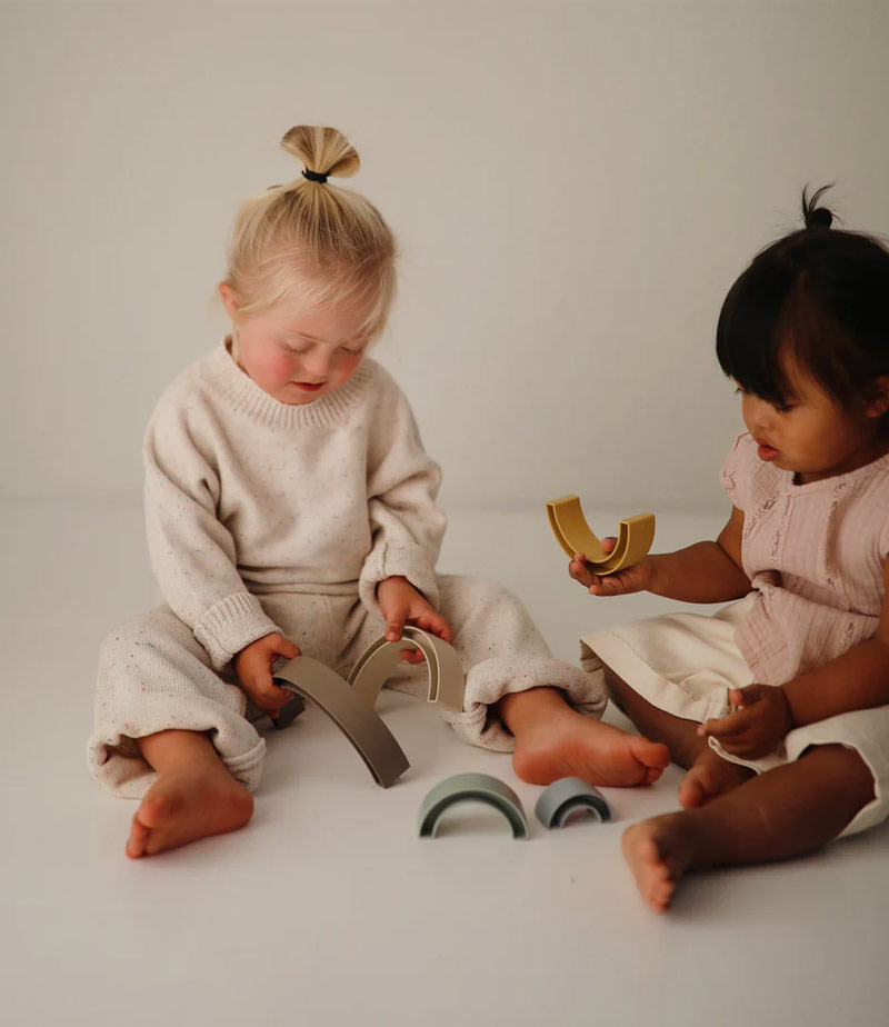 Από τη δανέζικη συλλογή hygge προέρχεται αυτό το παιχνιδιάρικο και υπέροχο παιχνίδι στοίβαξης με σχήμα το ουράνιο τόξο, εμπνευσμένο από τον ουράνιο τόξο στο Aarhus της Δανίας. Τα μικρά παιδιά θα ταξινομήσουν, θα στοιβάξουν και θα παίξουν με αυτό το όμορφο σετ, μαθαίνοντας τα απαλά χρώματα και αναπτύσσοντας τις λεπτές κινητικές τους δεξιότητες.