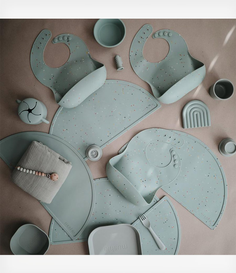Κρατήστε το μικρό σας καθαρό και άνετο με τις χαριτωμένες και διασκεδαστικές σαλιάρες σιλικόνης της Mushie!