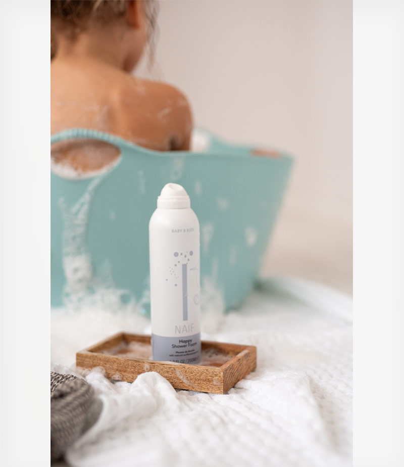 Τα παιδιά αγαπούν τις φυσαλίδες κατά τη διάρκεια του μπάνιου. Τα προϊόντα περιποίησης που περιέχουν σκληρούς αφριστικούς παράγοντες, όπως το SLS / SLES, μπορούν να στεγνώσουν το δέρμα.  Γι ‘αυτό οι αφροί καθαρισμού της εταιρείας Naïf δεν περιέχουν σκληρούς παράγοντες αφρισμού, αλλά χρησιμοποιούμε μια ήπια παραλλαγή από ίνες καρύδας.