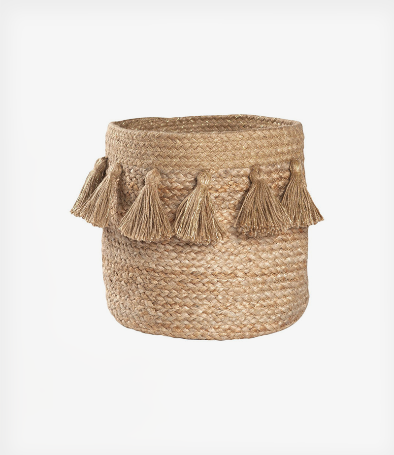 Το καλάθι αποθήκευσης Idris είναι κατασκευαμένο από 100% γιούτα, το οποίο, χάρη στα πον πόν του και τις διακριτικές χρυσές ανταύγειες που διακρίνονται στην πλέξη του, θα φέρει μια μοντέρνα και λεπτή πινελιά στη διακόσμησή σας!
