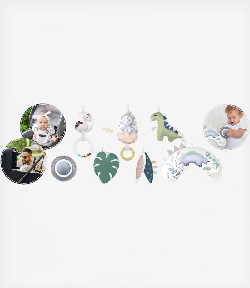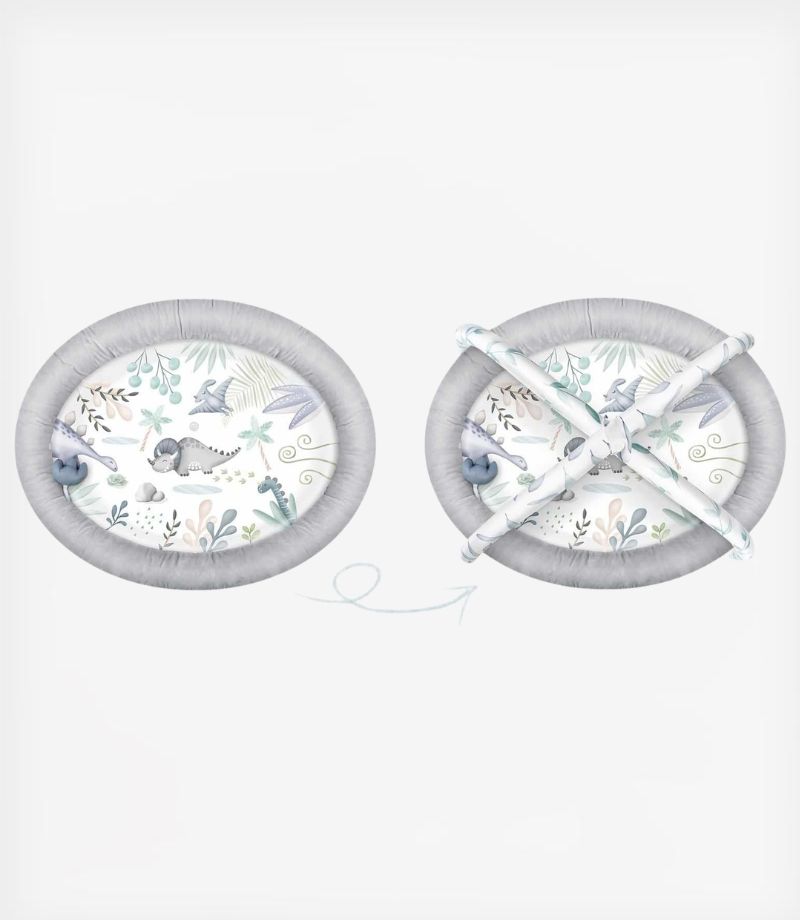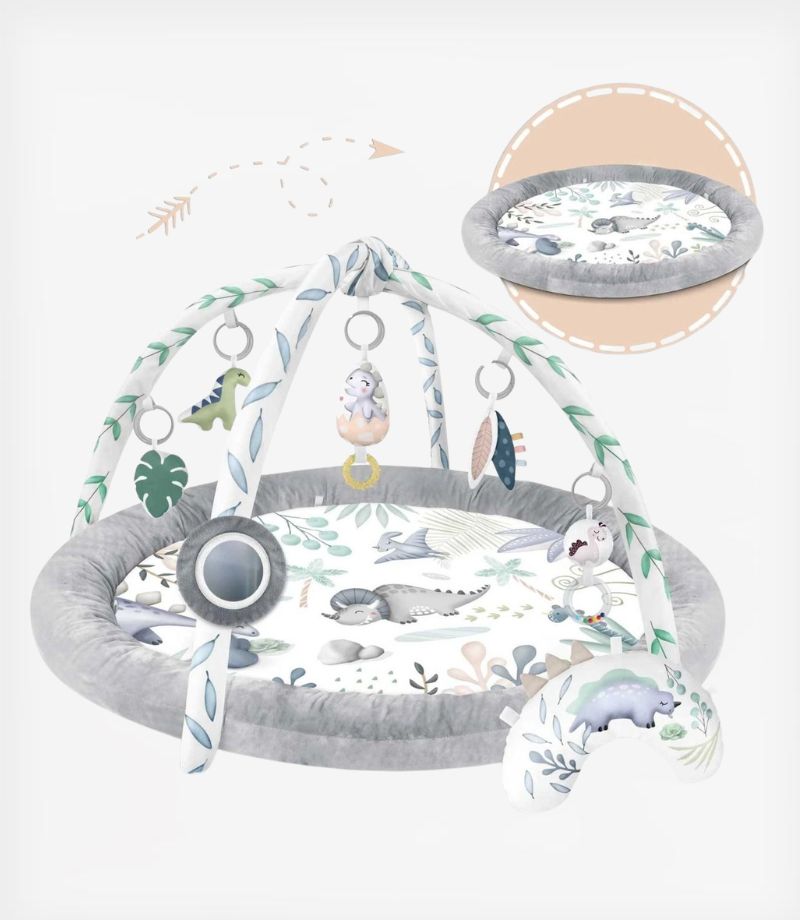 Το μαλακό του σχεδιασμό καθιστά την αποθήκευση και τη μεταφορά εύκολη, ενώ οι παιχνιδιάρικες λειτουργίες του προσκαλούν το παιδί να εξερευνήσει τη δημιουργικότητά του. Το γυμναστήριο υποστηρίζει την ανάπτυξη των κινητικών δεξιοτήτων, καθώς τα μωρά αρχίζουν να κλωτσούν και να τεντώνονται για να πιάσουν τα παιχνίδια που κρέμονται από τις μπάρες. Παράλληλα, ενισχύει την γνωστική τους ανάπτυξη, καθώς αναγνωρίζουν χρώματα, σχέδια και υφές, προάγοντας την οπτική διάκριση και τον συντονισμό ματιών-χεριών.