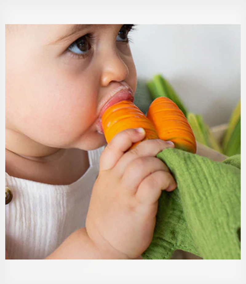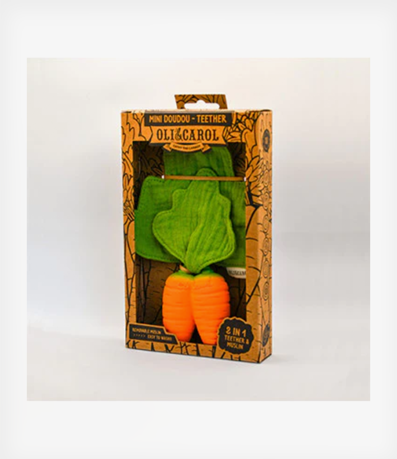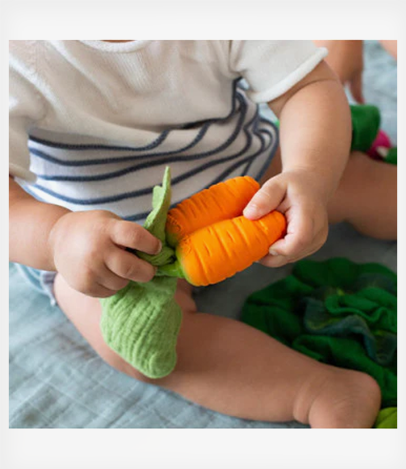 Δώστε την ευκαιρία στα παιδιά να γνωρίσουν από πολύ μικρή ηλικία τη σημασία των φρούτων, των λαχανικών και του υγιεινού τρόπου ζωής μέσα από την υπέροχη σειρά μασητικών και υφασμάτινων ντουντού της Oli & Carol! Τα παιδιά ξετρελαίνονται από το υπέρ-απαλό πανάκι παρηγοριάς (ντουντού) και την υφή του φυσικού καουτσούκ, ανακουφίζονται από τα πονάκια οδοντοφυΐας, ενώ παράλληλα εξοικειώνονται και μαθαίνουν να αγαπούν τα φρούτα και τα λαχανικά από τη βρεφική ηλικία!