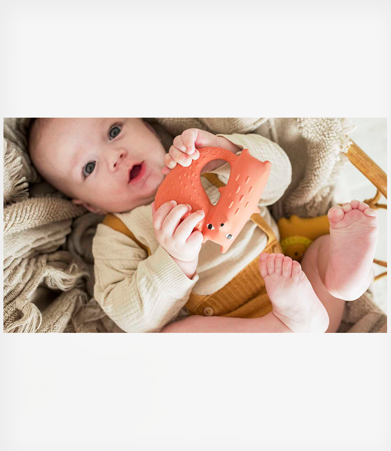 Ένα ασφαλές μασητικό από φυσικά υλικά και με εύκολο κράτημα για μικρά χεράκια. Μια μεγάλη ποικιλία υφών θα διεγείρει τις αισθήσεις του μωρού και θα καταπραΰνει τα ούλα από τα πονάκια οδοντοφυΐας.
