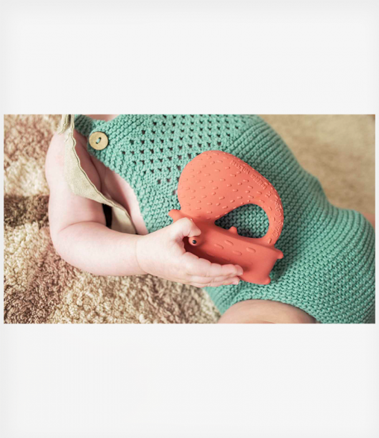 - Μαλακό, με εύκολο κράτημα και ασφαλές στο μάσημα. Διεγείρει τις αισθήσεις του μωρού και καταπραΰνει τα πονάκια οδοντοφυΐας.