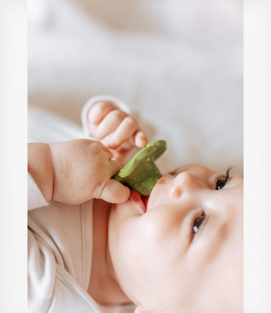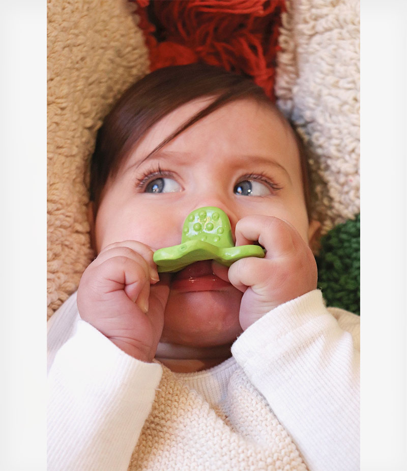 • Μαλακό, με εύκολο κράτημα και ασφαλές στο μάσημα. Διεγείρει τις αισθήσεις του μωρού και καταπραΰνει τα πονάκια οδοντοφυΐας.