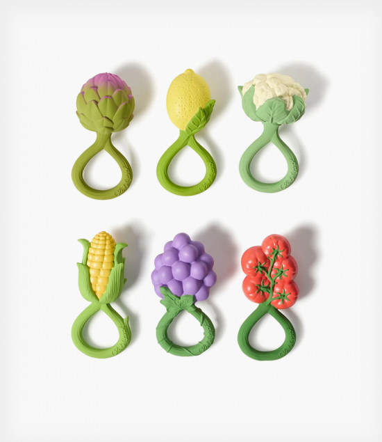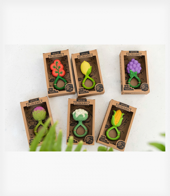 Δώστε την ευκαιρία στα παιδιά να γνωρίσουν από πολύ μικρή ηλικία τη σημασία των φρούτων, των λαχανικών και του υγιεινού τρόπου ζωής μέσα από την υπέροχη σειρά με μασητικά-κουδουνίστρες της Oli & Carol! Τα παιδιά ξετρελαίνονται από την ήχο της κουδουνίστρας και την υφή του φυσικού καουτσούκ, ανακουφίζονται από τα πονάκια οδοντοφυΐας, ενώ παράλληλα εξοικειώνονται και μαθαίνουν να αγαπούν τα φρούτα και τα λαχανικά από τη βρεφική ηλικία!
