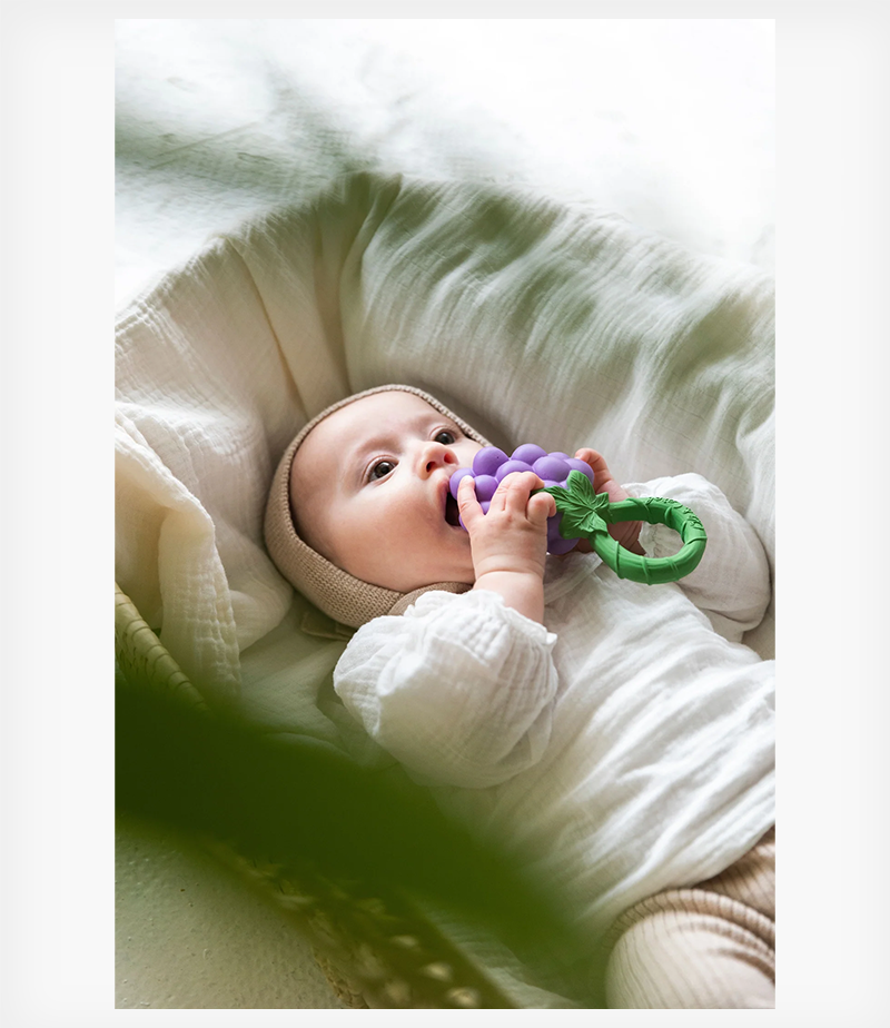 Δώστε την ευκαιρία στα παιδιά να γνωρίσουν από πολύ μικρή ηλικία τη σημασία των φρούτων, των λαχανικών και του υγιεινού τρόπου ζωής μέσα από την υπέροχη σειρά με μασητικά-κουδουνίστρες της Oli & Carol! Τα παιδιά ξετρελαίνονται από την ήχο της κουδουνίστρας και την υφή του φυσικού καουτσούκ, ανακουφίζονται από τα πονάκια οδοντοφυΐας, ενώ παράλληλα εξοικειώνονται και μαθαίνουν να αγαπούν τα φρούτα και τα λαχανικά από τη βρεφική ηλικία!