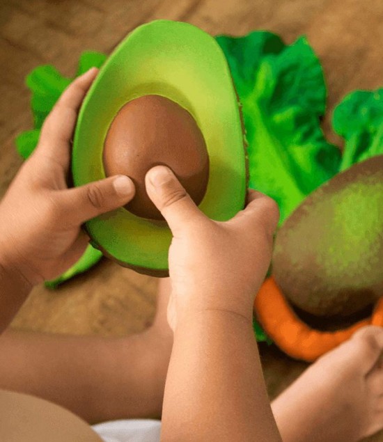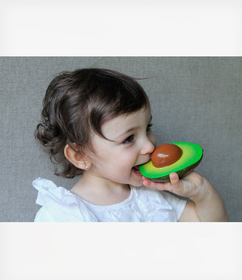 Ιδανικά και για το μπάνιο. Μασητικό σε σχήμα από αβοκάντο για την ανάπτυξη των αισθήσεων, για ανακούφιση από πονάκια οδοντοφυΐας και για παιχνίδι στο μπάνιο. Τα παιδιά αγαπούν την υφή του φυσικού καουτσούκ από δέντρα Hevea. Κατάλληλο από την πρώτη ημέρα της γέννησης.