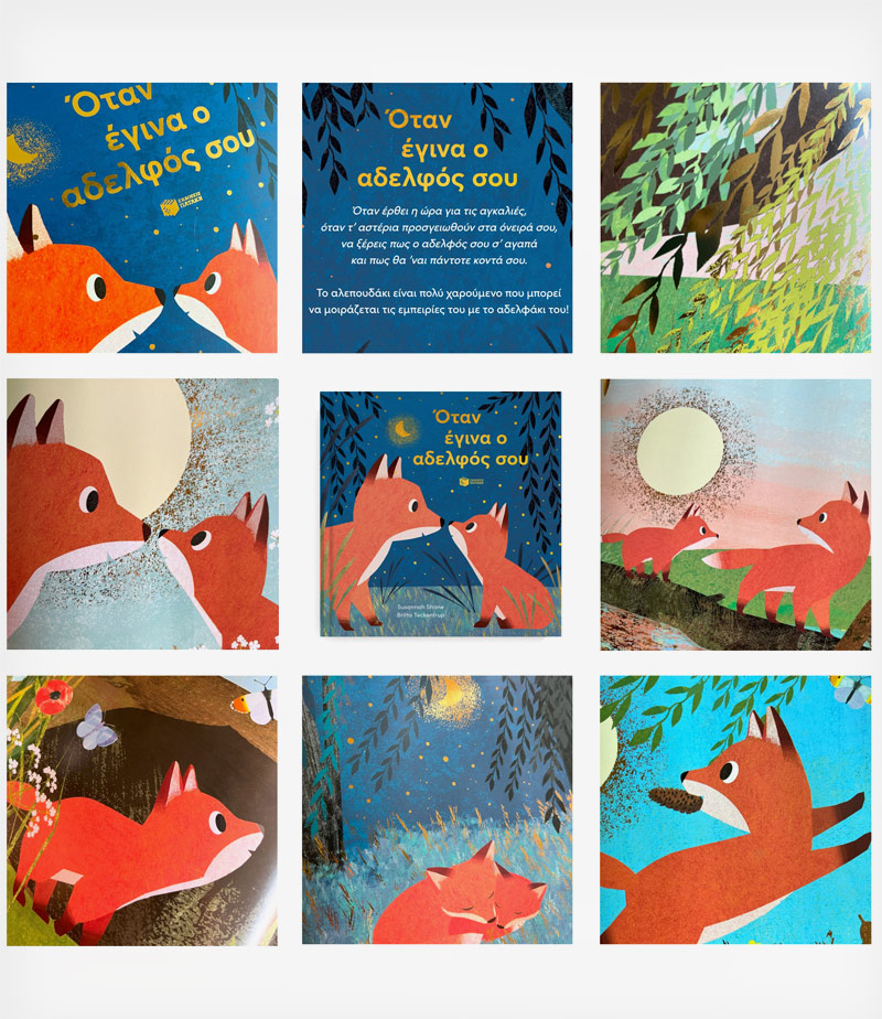 Ένα όμορφο, συγκινητικό εικονογραφημένο βιβλίο, mε ένα λυρικό κείμενο με ομοιοκαταληξία, που εξυμνεί τον δεσμό και την αγάπη ανάμεσα σε δύο αδέλφια. Είτε κυνηγάει πεταλούδες είτε μοιράζεται κουκουνάρια είτε χαζεύει την ώρα του ύπνου, δεν υπάρχει τίποτα που να αγαπά περισσότερο αυτό το μικρό αλεπουδάκι από το να περνά χρόνο με τον μεγάλο του αδερφό.