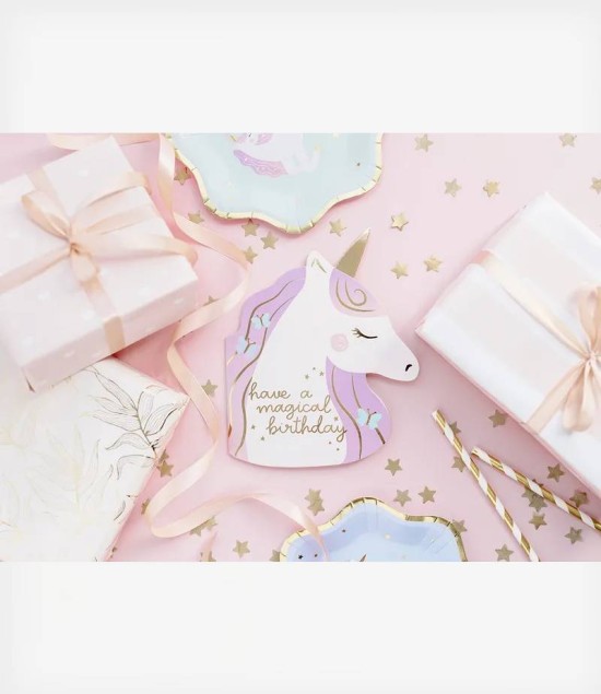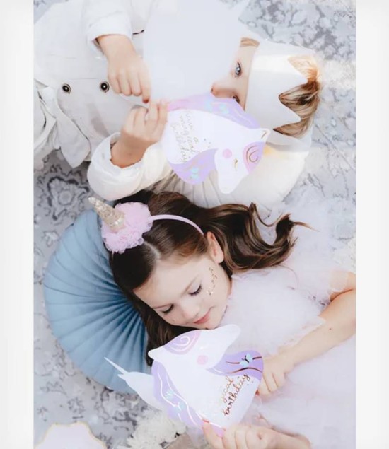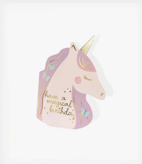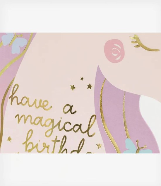 Κάρτα γενεθλίων Unicorn, σε παλ αποχρώσεις.