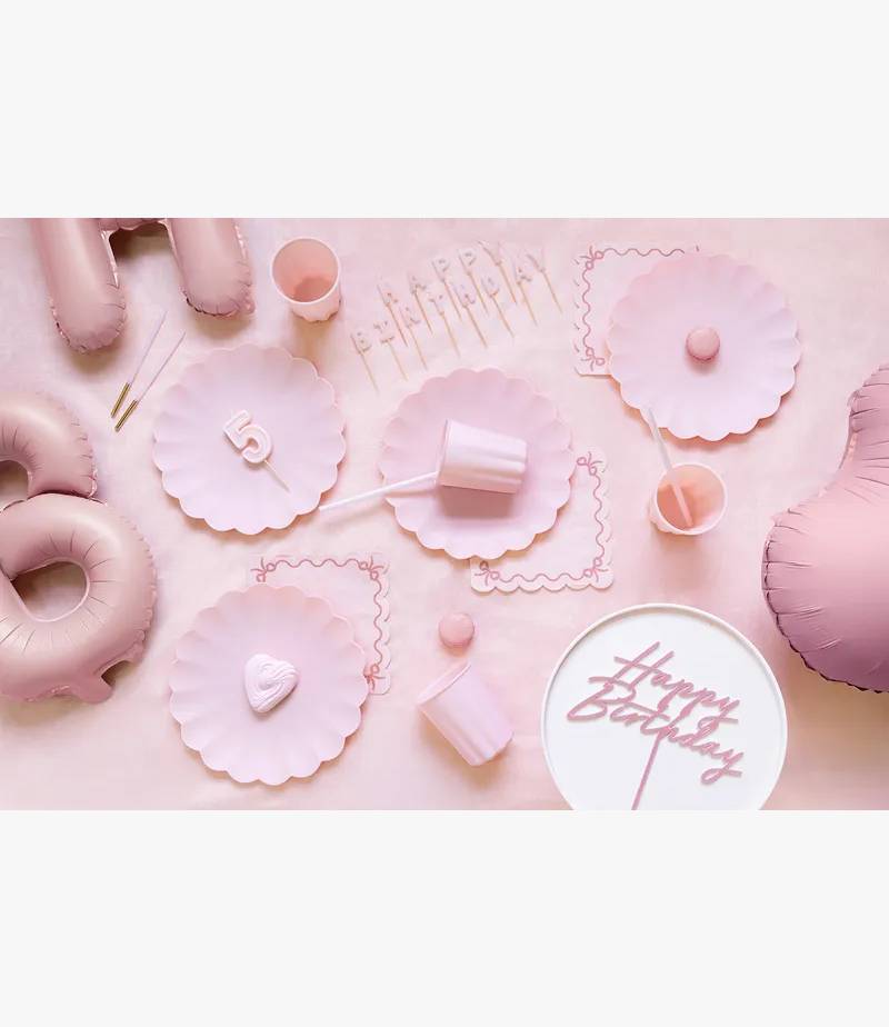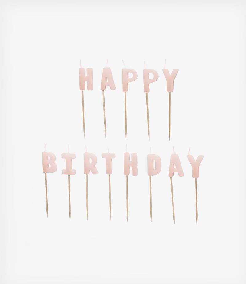 Κεράκια γενεθλίων σε ροζ απόχρωση που σχηματίζουν την φράση Happy Birthday, για να κάνετε την τούρτα των γενεθλίων σας εντυπωσιακή!