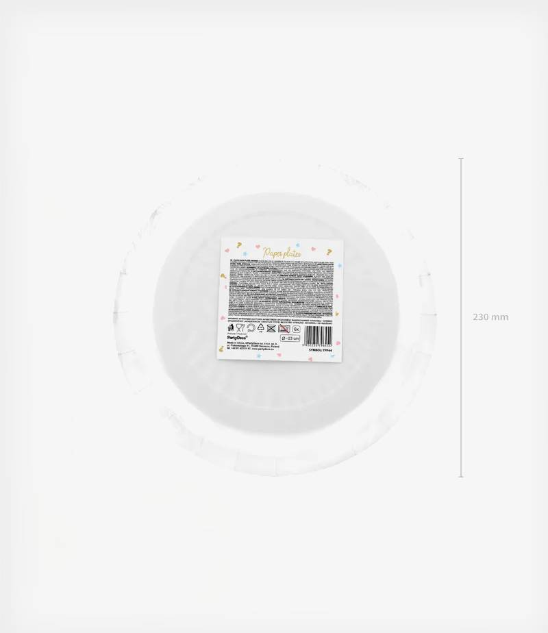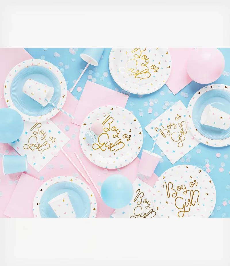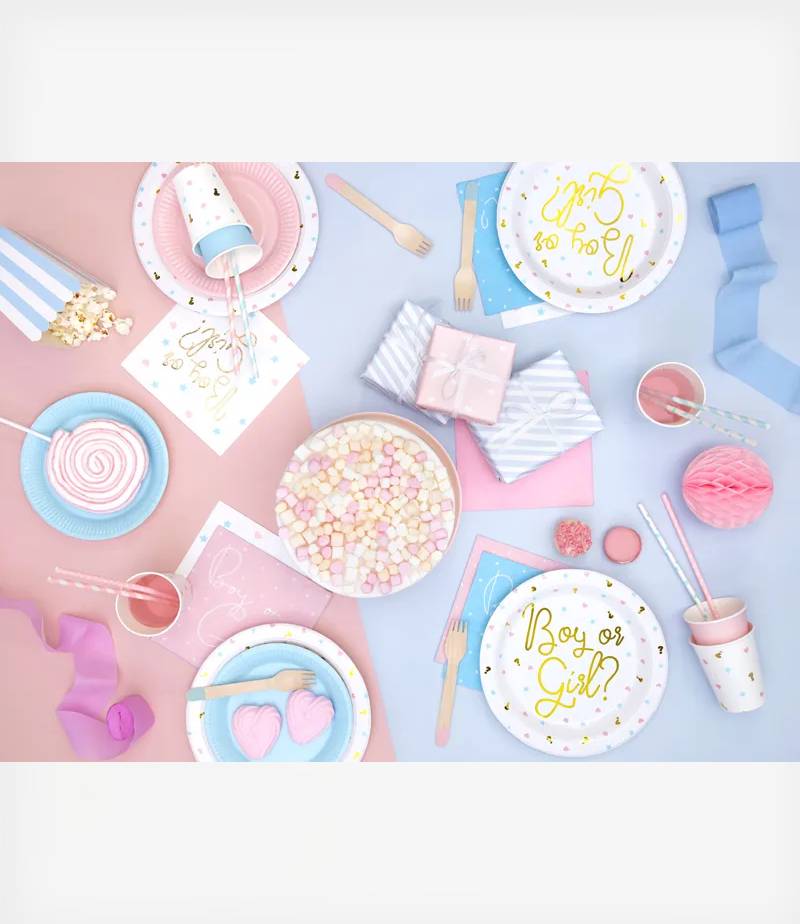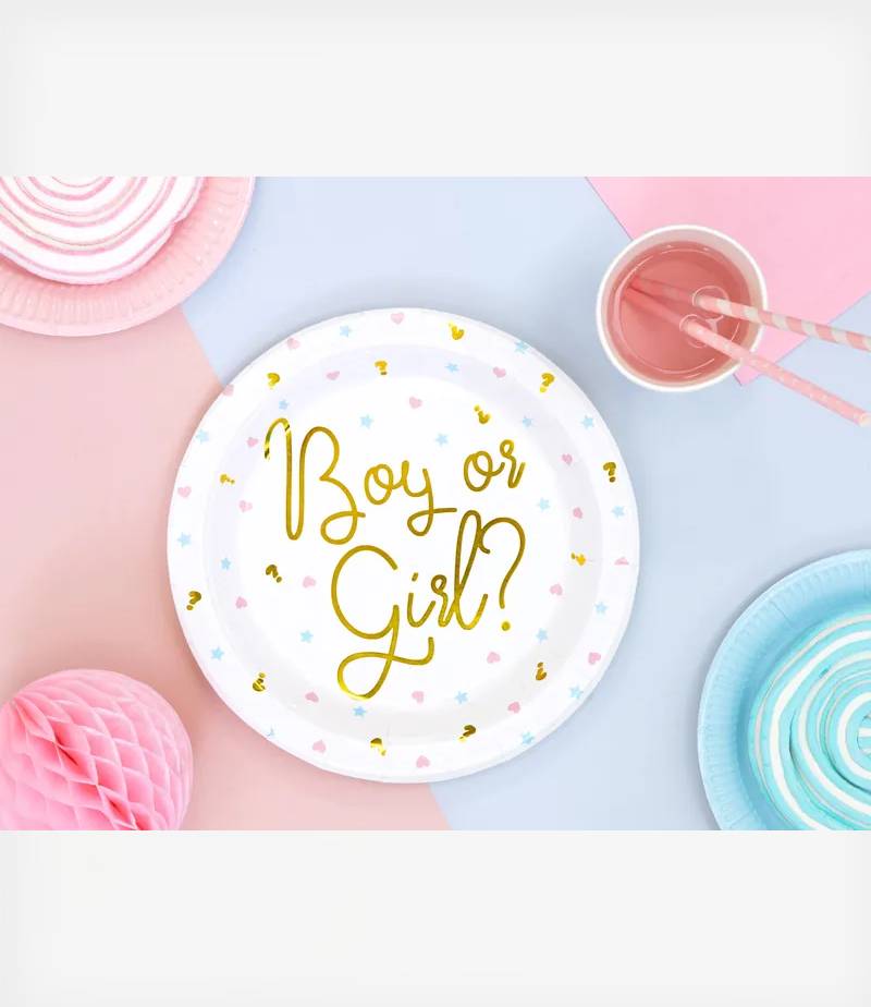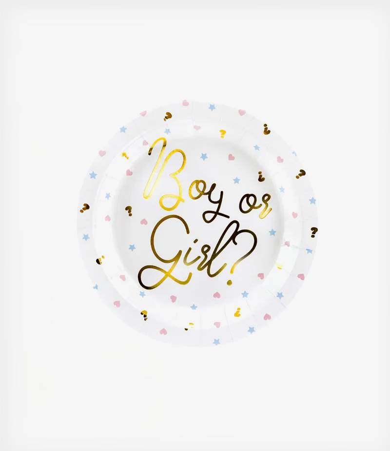 6 χάρτινα πιατάκια φαγητού 23 εκ με χρυσή επιγραφή Boy or Girl?