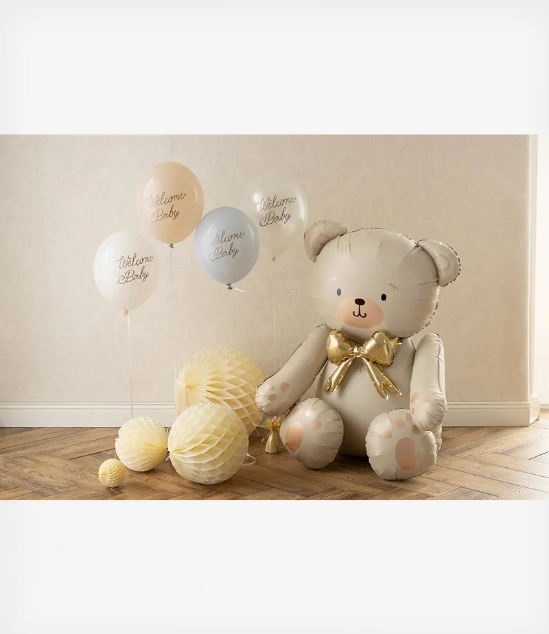 Mπαλόνι χαριτωμένο μπεζ αρκουδάκι που κάθεται, για μια αξιολάτρευτη διακόσμηση που θα λατρέψουν οι καλεσμένοι σου