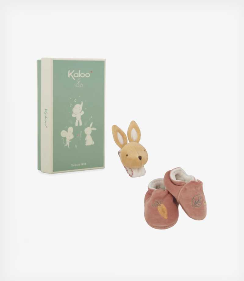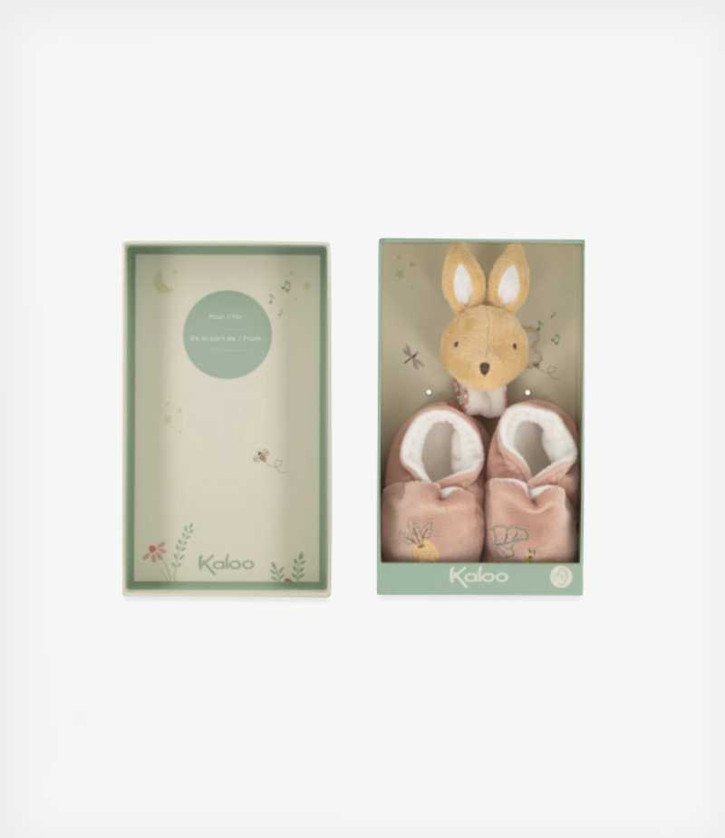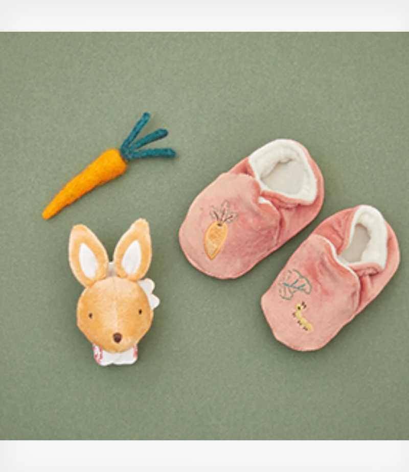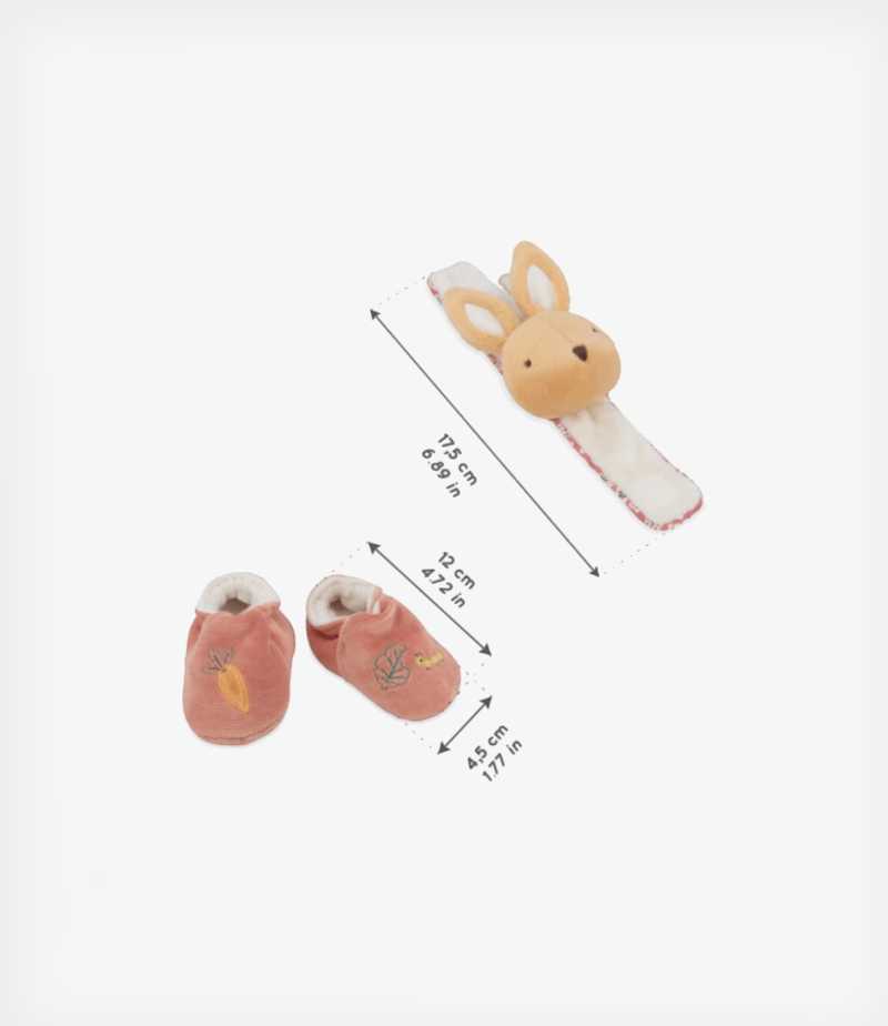 Petites Chansons Σετ παντοφλάκια και βραχιολάκι-κουδουνίστρα κουνελάκι