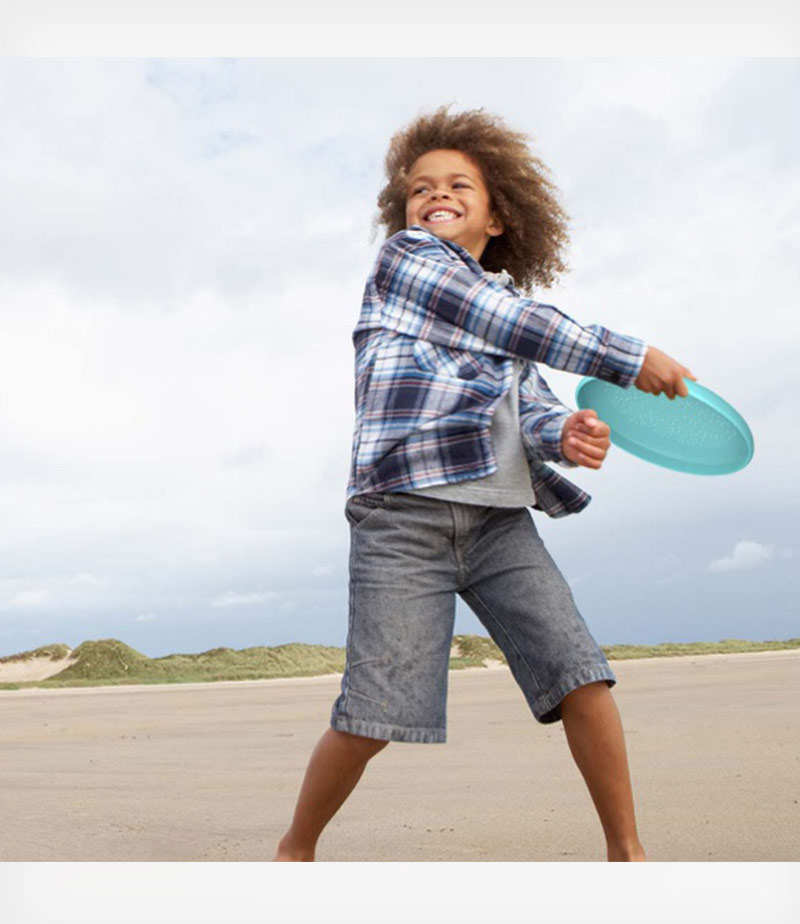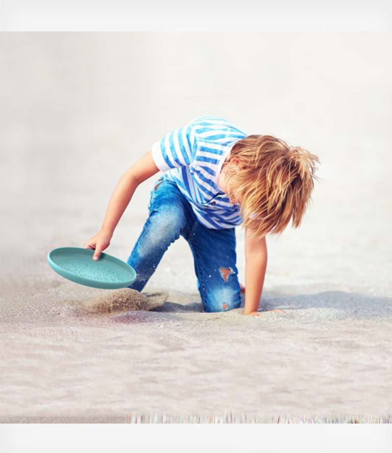 Είναι κατασκευασμένο από ανθεκτικό, ανακυκλώσιμο πλαστικό και μπορεί να χρησιμοποιηθεί ως ιπτάμενος δίσκος ή κόσκινο για την άμμο.