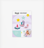 Όλα τα σχήματα είναι κατασκευασμένα από μαλακό αφρώδες υλικό EVA, το οποίο τα κρατάει στην επιφάνεια. Το σετ περιλαμβάνει επίσης 2 δακτυλοκουκλάκια.