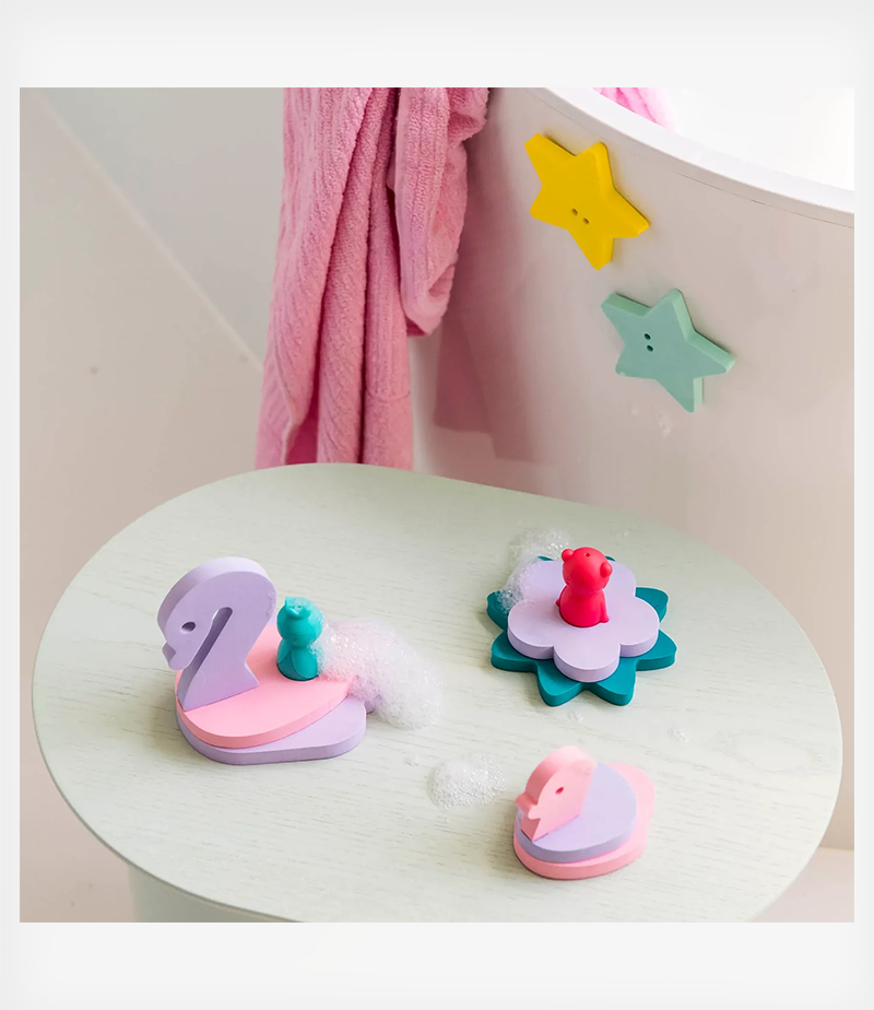 Ποιος δεν αγαπάει τα παραμύθια; Μετατρέψτε την μπανιέρα σας σε ένα μαγευτικό σκηνικό με τη μαμά κύκνο, το μωράκι της, μερικά λουλούδια, αστέρια και τις νεραϊδοκουκλίτσες.