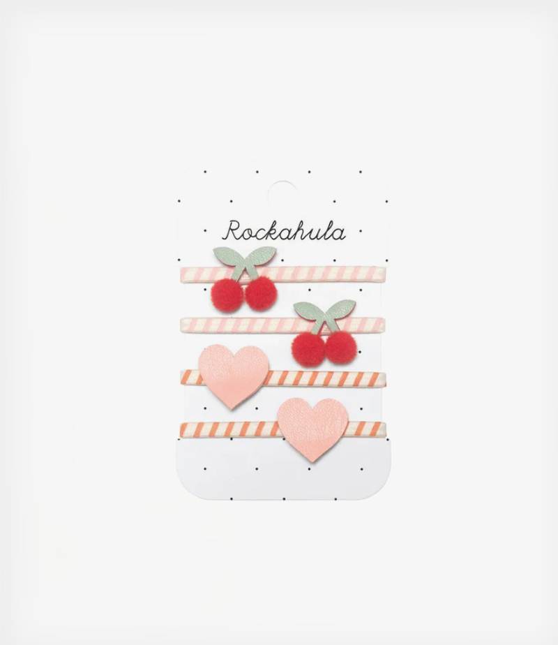 Κλέψε τις εντυπώσεις με αυτή τη συσκευασία που αποτελείται από 4 λαστιχάκια μαλλιών! Διασκεδαστικά κερασάκια από πον-πον με καταπράσινα κοτσανάκια στολίζουν δύο ροζ καρό λαστιχάκια, ενώ δύο χαριτωμένες ροζ καρδούλες στολίζουν τα άλλα δύο καρό λαστιχάκια.