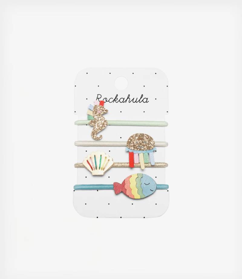Αφήστε τα φιλικά μας θαλάσσια πλάσματα να σας μεταφέρουν στη θάλασσα με αυτή τη διασκεδαστική συσκευασία από 4 λαστιχάκια μαλλιών. Περιλαμβάνει έναν λαμπερό ιππόκαμπο, ένα κοχύλι στα όμορφα χρώματα του ουράνιου τόξου, γκλιτερένιες μέδουσες και ένα ψαράκι στα χρώματα του ουράνιου τόξου. Φορέστε τα ένα-ένα ή, ακόμα καλύτερα, όλα μαζί!