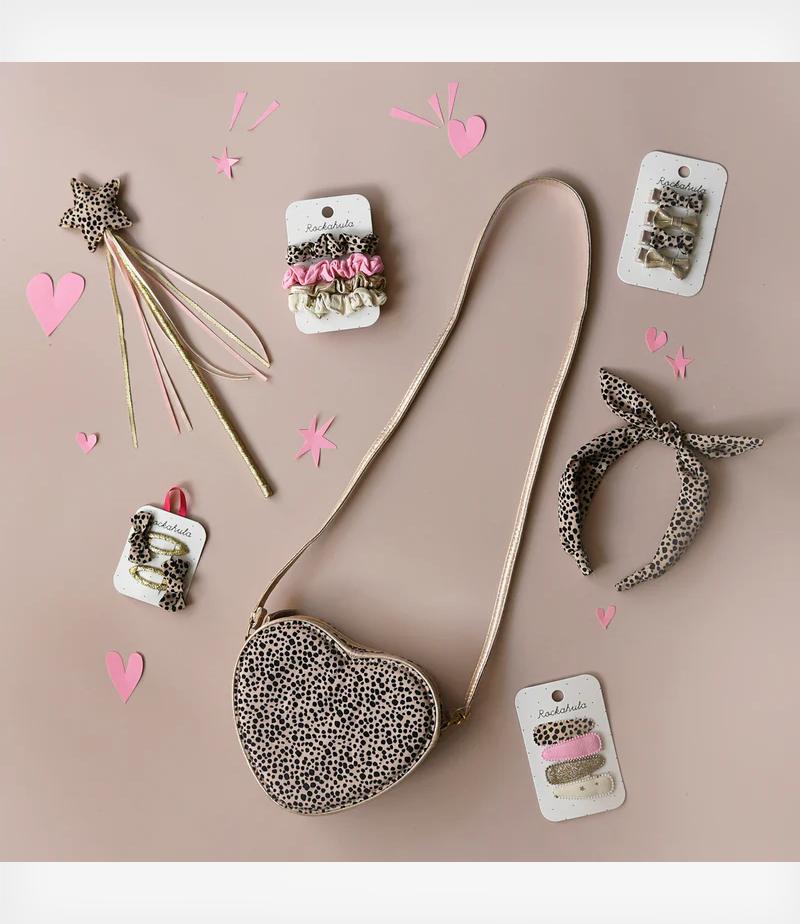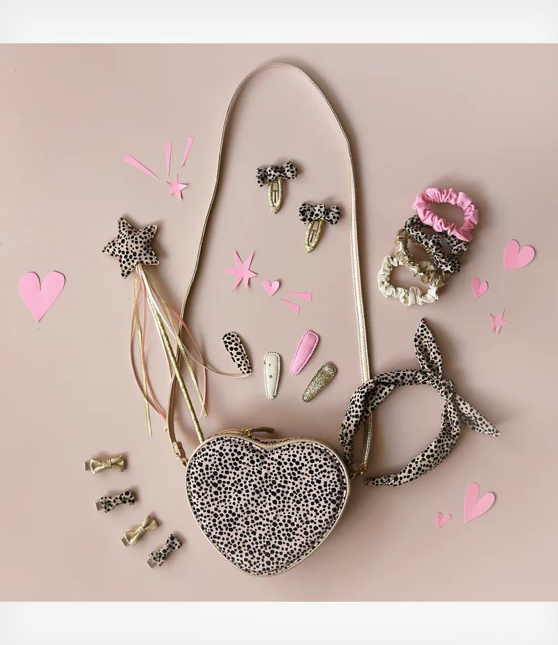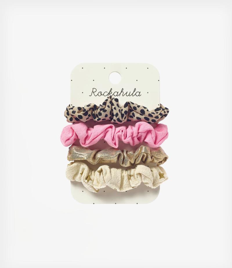 Περιλαμβάνει το χαρακτηριστικό μας λεοπάρ σχέδιο, έντονο ροζ, χρυσή λάμψη και εκρού ύφασμα με διασκορπιστά αστέρια – τα απόλυτα scrunchies για μικρές λάτρεις των λεοπάρ!
