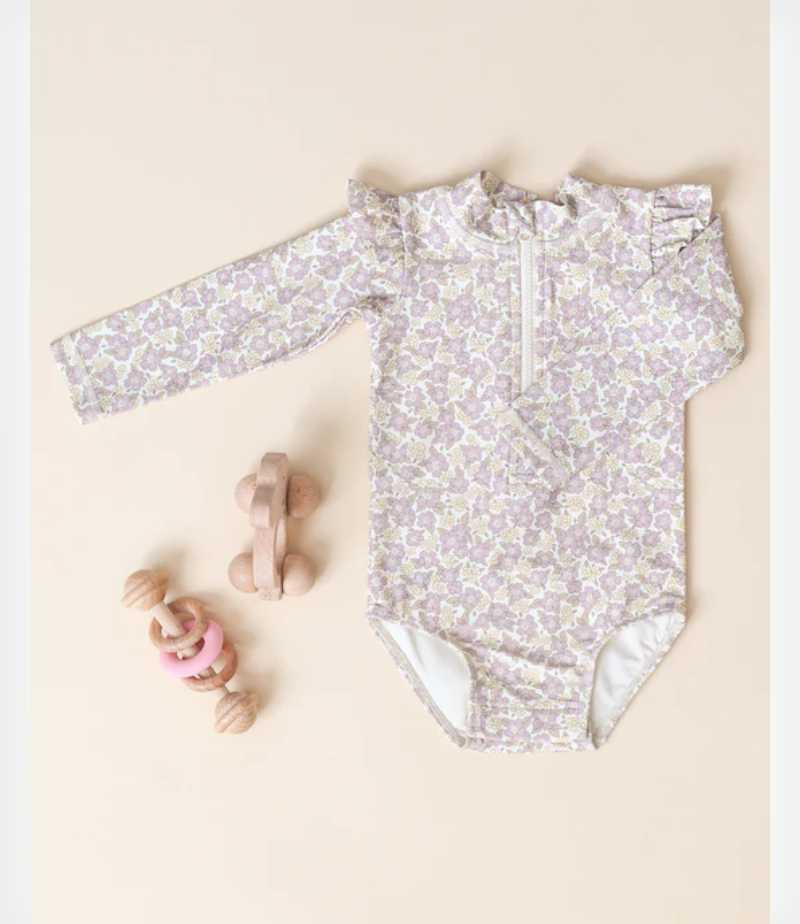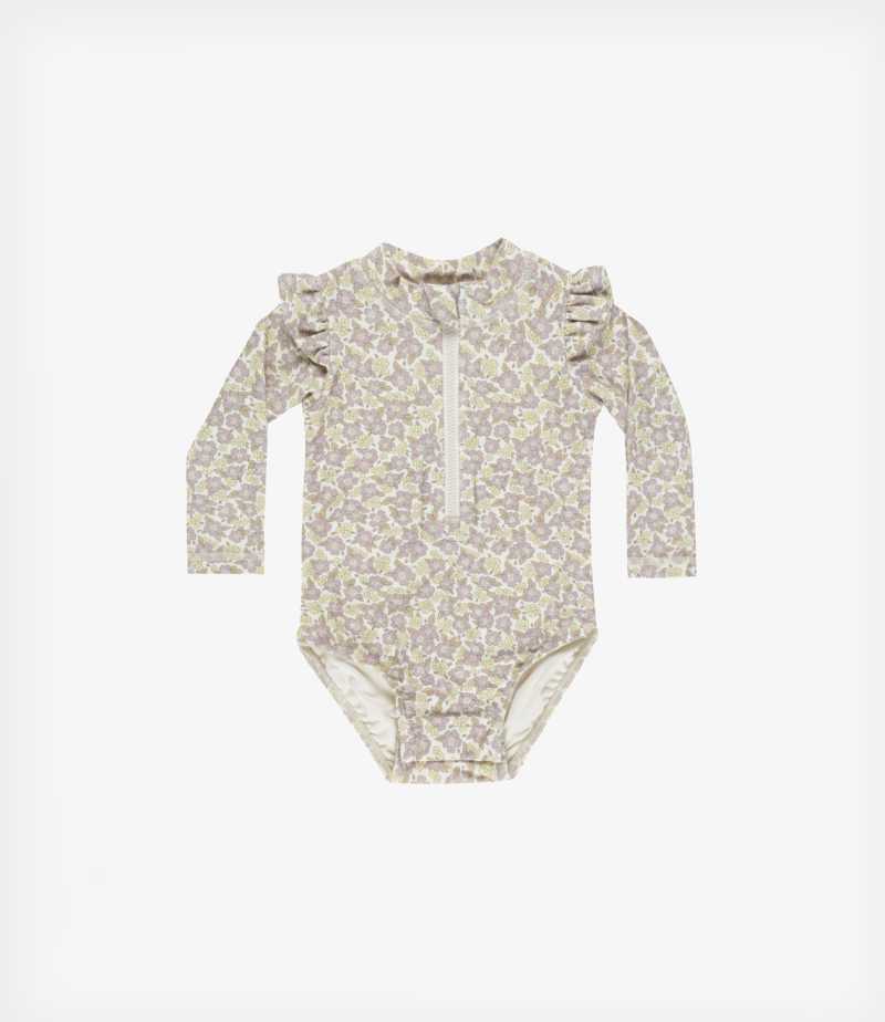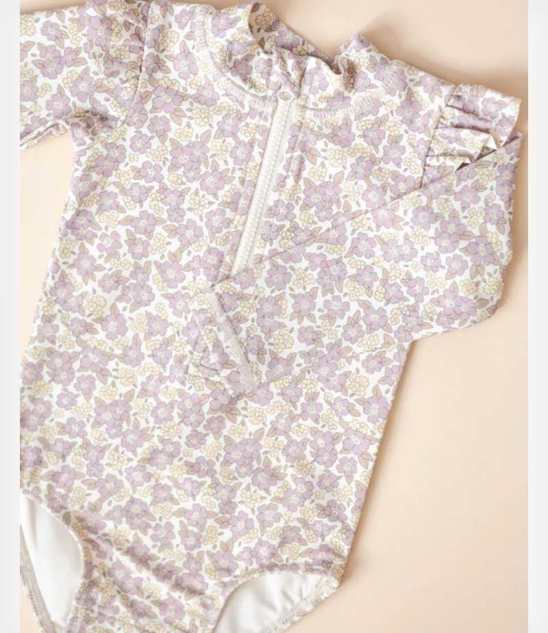 Αυτό το πικέ ολόσωμο μαγιό rashguard θα προστατεύσει το μικρό σας από τον ήλιο με στυλ. Διαθέτει μπροστινό φερμουάρ και λεπτομέρεια με βολάν στους ώμους.