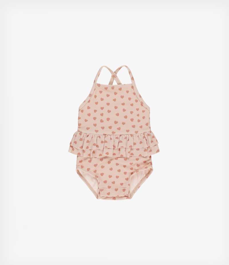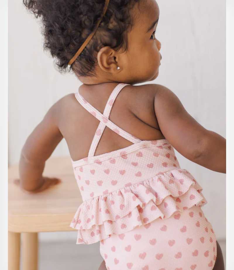 Αυτό το ολόσωμο μαγιό θα προστατεύσει το μικρό σας από τον ήλιο με στυλ. Διαθέτει βολάν και χιαστί straps.