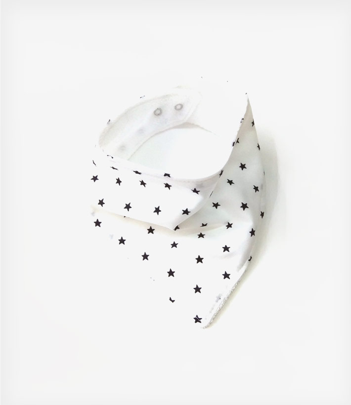 Είναι φτιαγμένες από 100% οικολογικό βαμβάκι οι οποίες έχουν επενδυθεί από έξτρα απορροφητικό υπόστρωμα βαμβακοφανέλλας. Οι σαλιάρες διαθέτουν κλίπ 2 θέσεων το οποίο καλύπτει το μωρό από νεογέννητο εώς και τεσσάρων ετών .