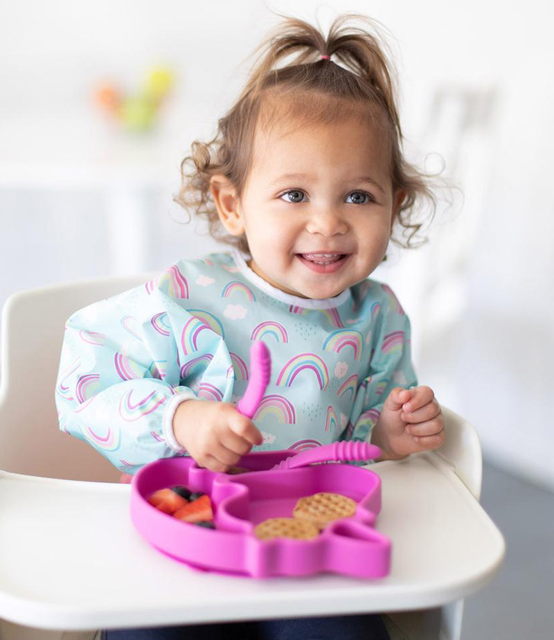 Σχεδιασμένη για ηλικίες από 6 μηνών έως 2 χρονών, η σαλιάρα έχει ελαστικές άκρες μανικιών για να προσαρμόζεται στο μάκρος και πίσω κλείσιμο με κορδόνι για άνετο και προσαρμόσιμο φόρεμα.