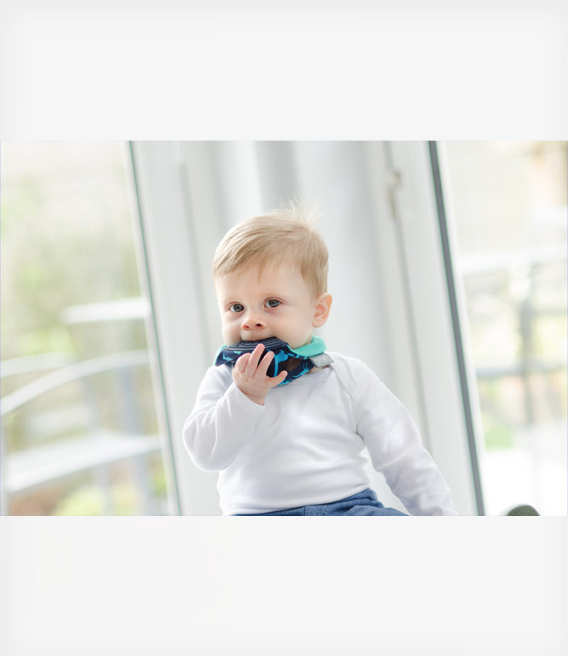 Η τελευταία καινοτομία στα προϊόντα βρεφικής οδοντοφυΐας με έναν μοναδικό σχεδιασμό που συνδυάζει την δημοφιλή σαλιάρα φουλάρι και μασητικό για να απαλύνει τους πόνους στα ούλα. Ξεχάστε το μάζεμα των μασητικών από το πάτωμα ή το να τα χάνετε συχνά.