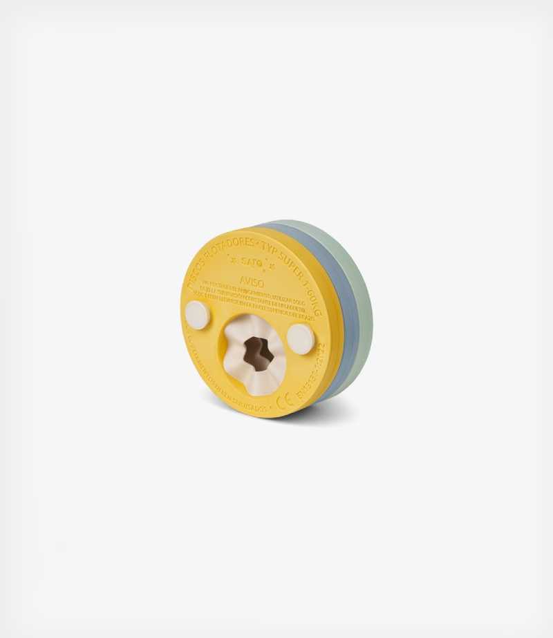 Κάθε μπρατσάκι έχει 3 ειδικούς δίσκους επίπλευσης. Μπορείς να τους αφαιρείς σταδιακά, ανάλογα με την πρόοδο του παιδιού, διατηρώντας πάντα ίσο αριθμό δίσκων και στα δύο χέρια για σταθερότητα. Αν δείτε κόπωση ή μειωμένο έλεγχο κινήσεων, μπορείτε εύκολα να προσθέσετε ξανά έναν δίσκο για επιπλέον στήριξη.