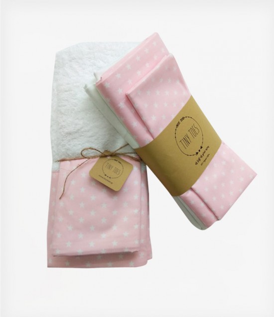Σετ σεντόνια κούνιας Tiny Toes (κατωσέντονο με λάστιχο, πανωσέντονο, μαξιλαροθήκη) από οργανικό βαμβάκι 100%.