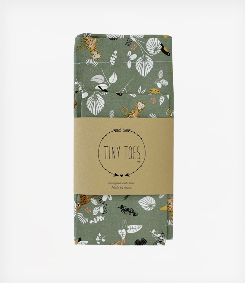 Σετ σεντόνια κούνιας Tiny Toes (κατωσέντονο με λάστιχο, πανωσέντονο, μαξιλαροθήκη) από βαμβάκι 100%.