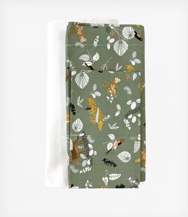 Τα σεντόνια κούνιας συνδυάζεται ιδανικά με τα υπόλοιπα λευκά ήδη της συλλογής Jungle όπως, πάντα, παπλωματάκι, κουβέρτα, πετσέτες, μπουρνούζι, καλαθούνα, αδιάβροχο κάλυμμα, σαλιάρα, λαβέτα κ.α.
