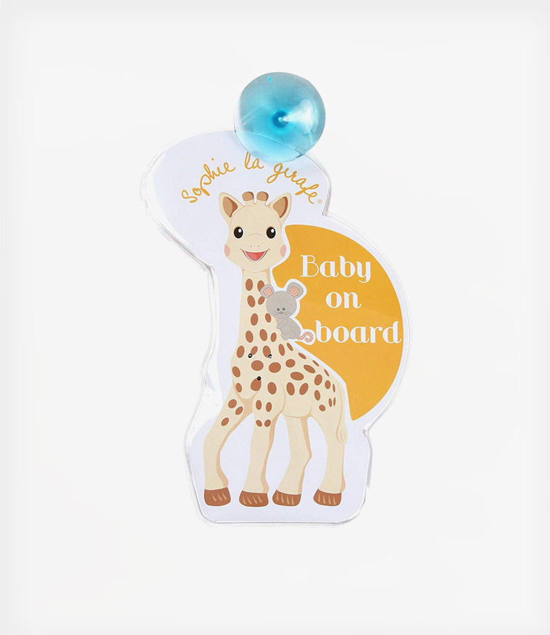 Το σήμα αυτοκινήτου της αγαπημένης μας Σόφι της καμηλοπάρδαλης, στερεώνεται με μια βεντούζα στο πίσω μέρος του τζαμιού, έχει όμορφα σχέδια και χρώματα για να γίνεται ορατό, και το πιο ωραίο; μέσα στις βούλες της είναι κρυμμένα LED λαμπάκια που ενεργοποιούνται αυτόματα με την κίνηση.