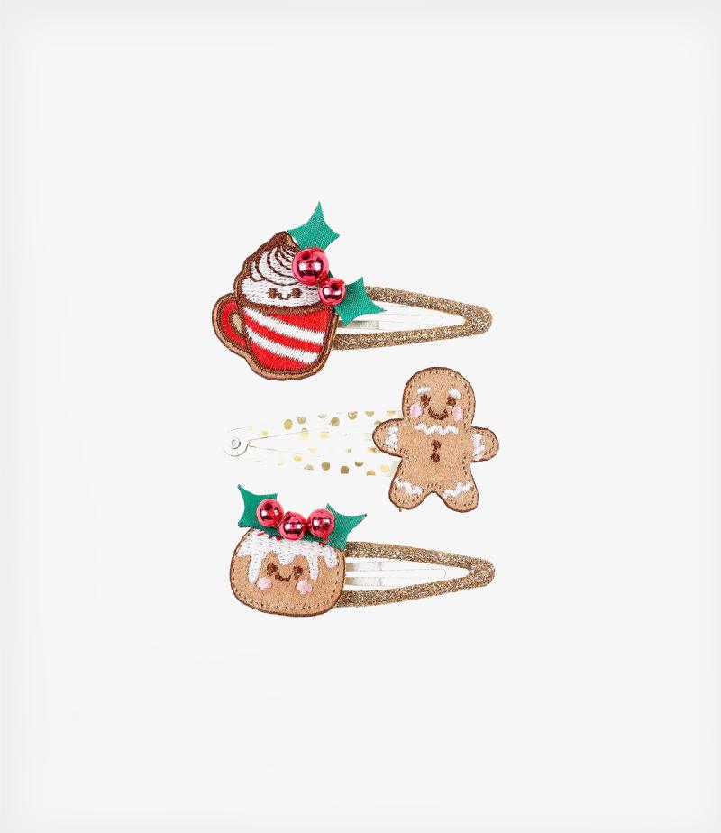 Χριστουγεννιάτικα τσιμπιδάκια για τα μαλλιά με διάφορα εορταστικά σχέδια.