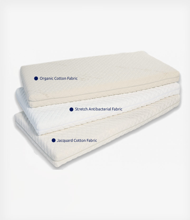 Εξωτερικό κάλυμμα με ύφασμα από οργανικό βαμβάκι επεξεργασίας καπιτονέ με οργανική βαμβακερή βάτα. Είναι αποσπώμενο, υποαλλεργικό, «αναπνέει», συμβάλλει στη διατήρηση της ιδανικής θερμοκρασίας, είναι μη τοξικό και βραδύκαυστο.
