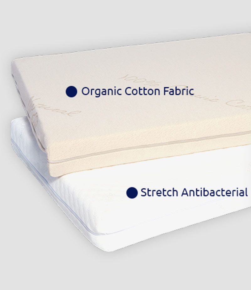 Εξωτερικό κάλυμμα με ύφασμα από οργανικό βαμβάκι επεξεργασίας καπιτονέ με οργανική βαμβακερή βάτα. Είναι αποσπώμενο, υποαλλεργικό, «αναπνέει», συμβάλλει στη διατήρηση της ιδανικής θερμοκρασίας, είναι μη τοξικό και βραδύκαυστο.