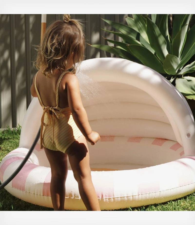 Διαθέτει ενσωματωμένο φουσκωτό σκίαστρο που προστατεύει τα παιδιά από τον ήλιο, καθώς και φουσκωτό μαλακό πάτο για επιπλέον άνεση.