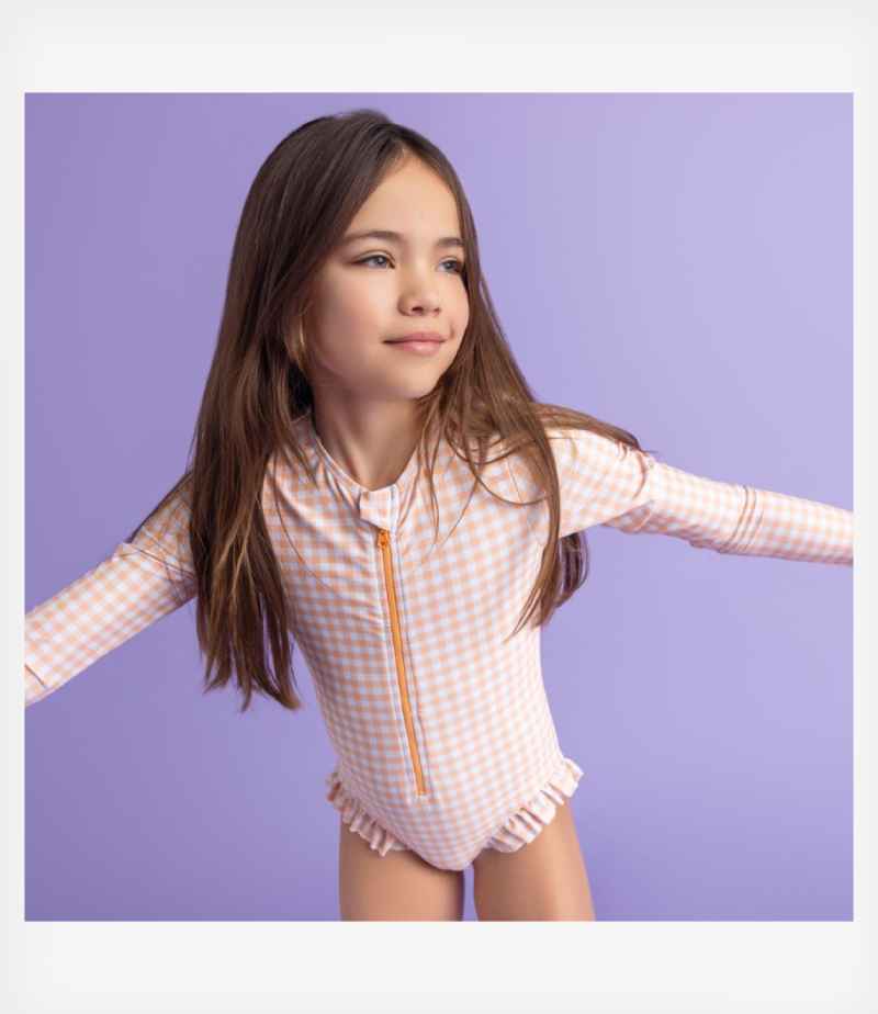 Swim Essentials Ολόσωμο μαγιό με μακριά μανίκια “Apricot orange”