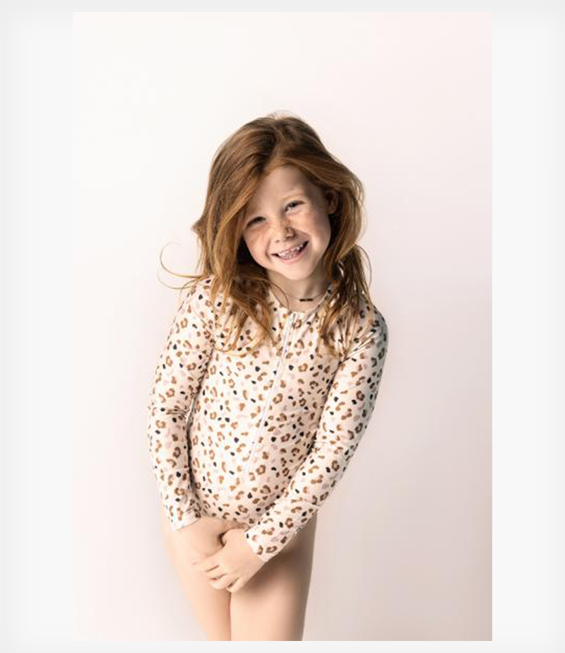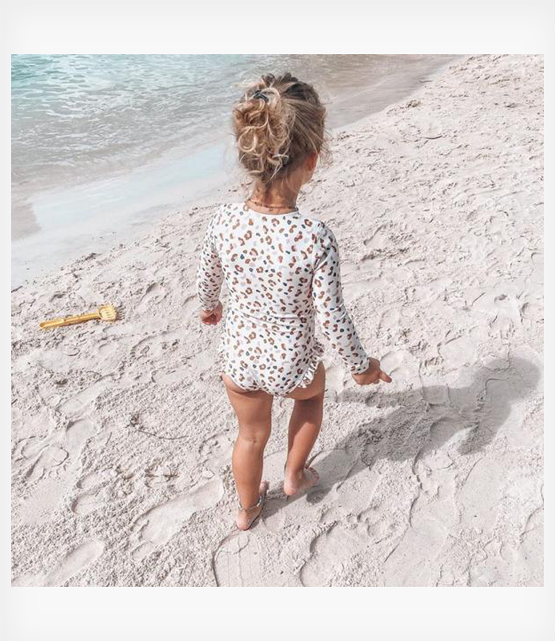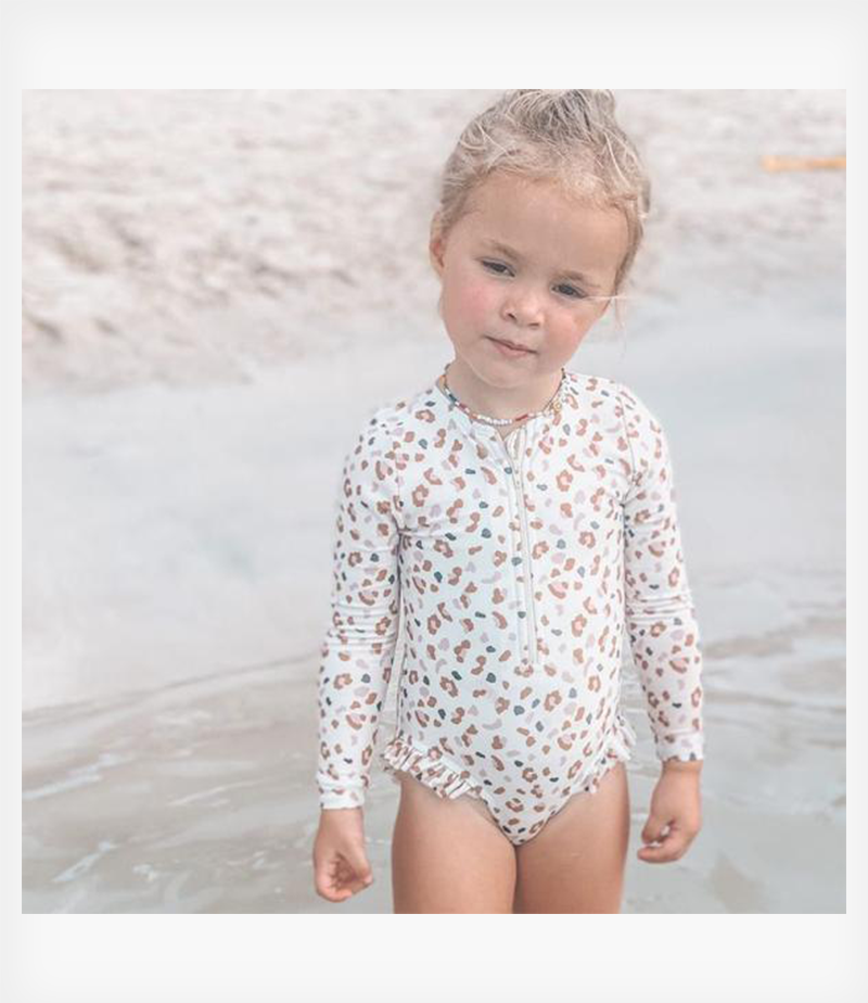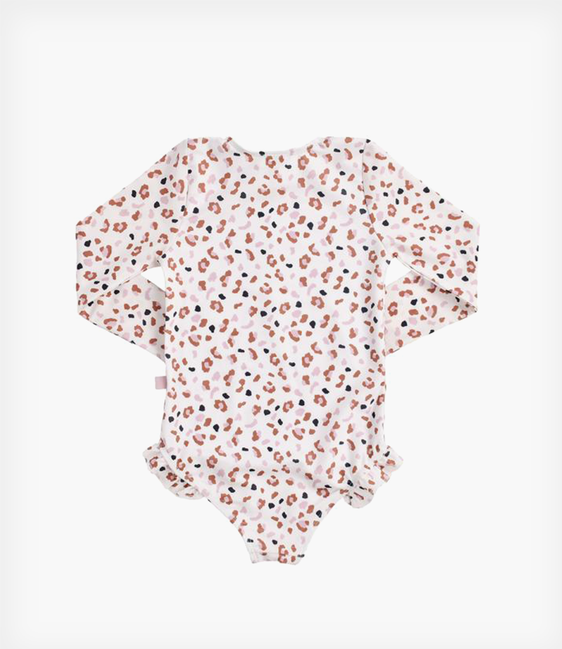 Swim Essentials Ολόσωμο μαγιό με μακριά μανίκια “Offwhite Kahki Leopard”